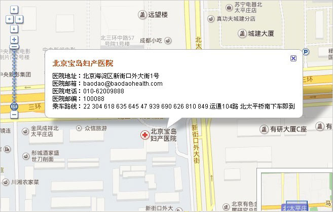 北京宝岛妇产医院地址:北京海淀区新街口外大街1号